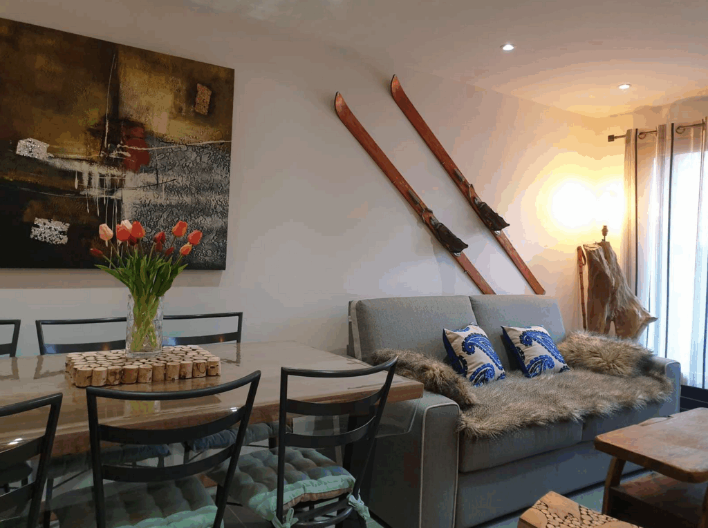 La Chouette Blanche, c’est un charmant appartement de 43 m2 très bien équipé et au pied des pistes. Aménagé pour 6 personnes et lumineux, il est ensoleillé l’après midi et décoré dans un esprit montagne très cosy.